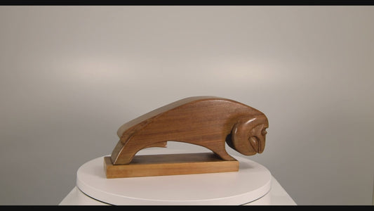 Mid Twentieth Century Modernist Ram in Walnut signed 'Clarke'