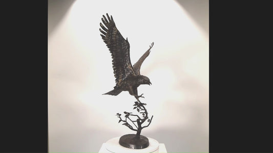 Brian Heard Study of a Perched Falcon in Cherry Wood circa 1980s