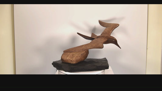 Peter Boex Tern in Flight Sculpted in Sycamore on Natural Slate Base dated 1975