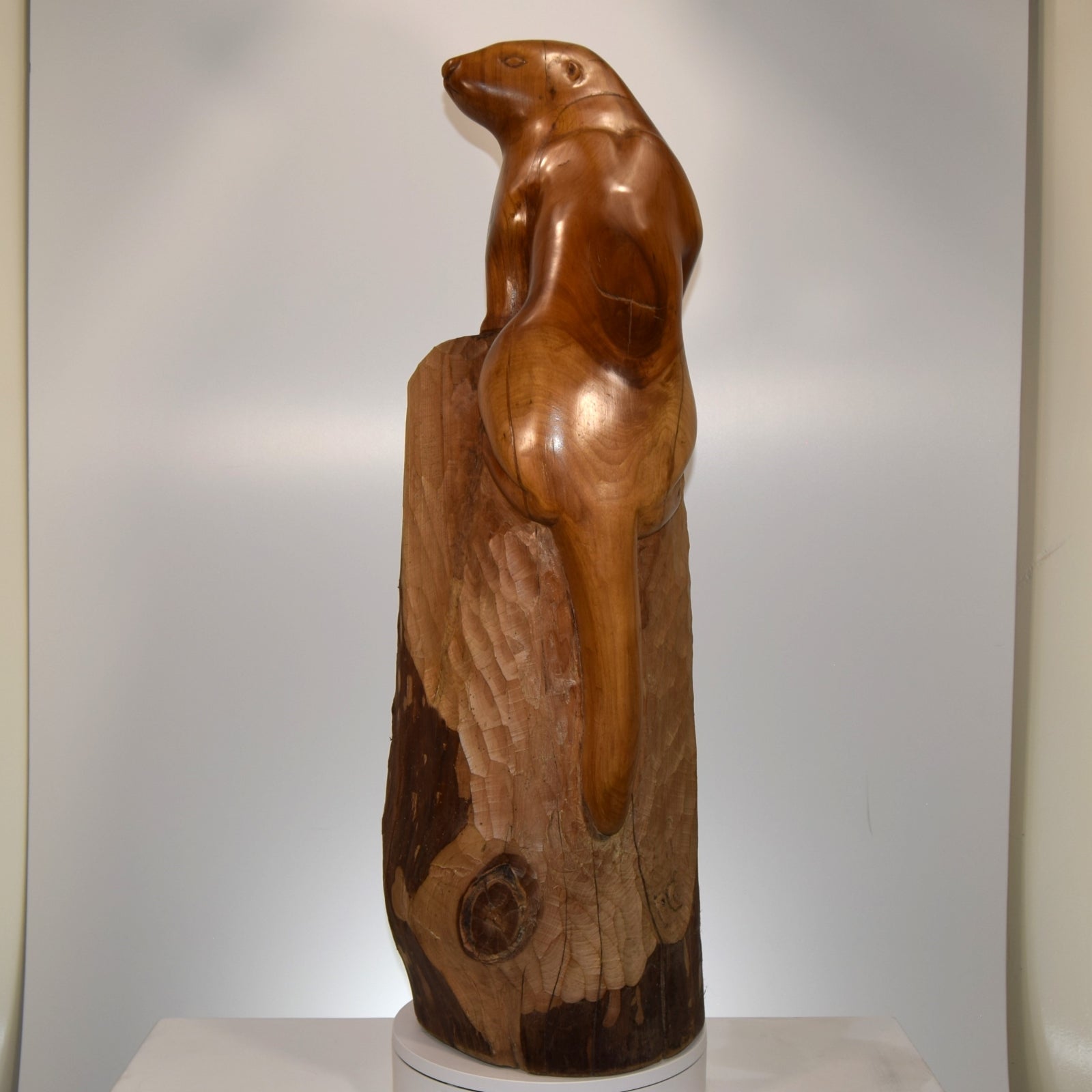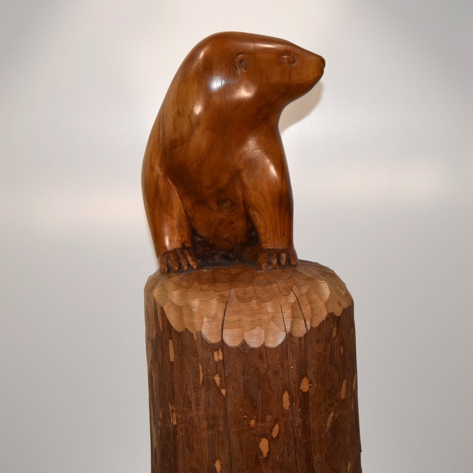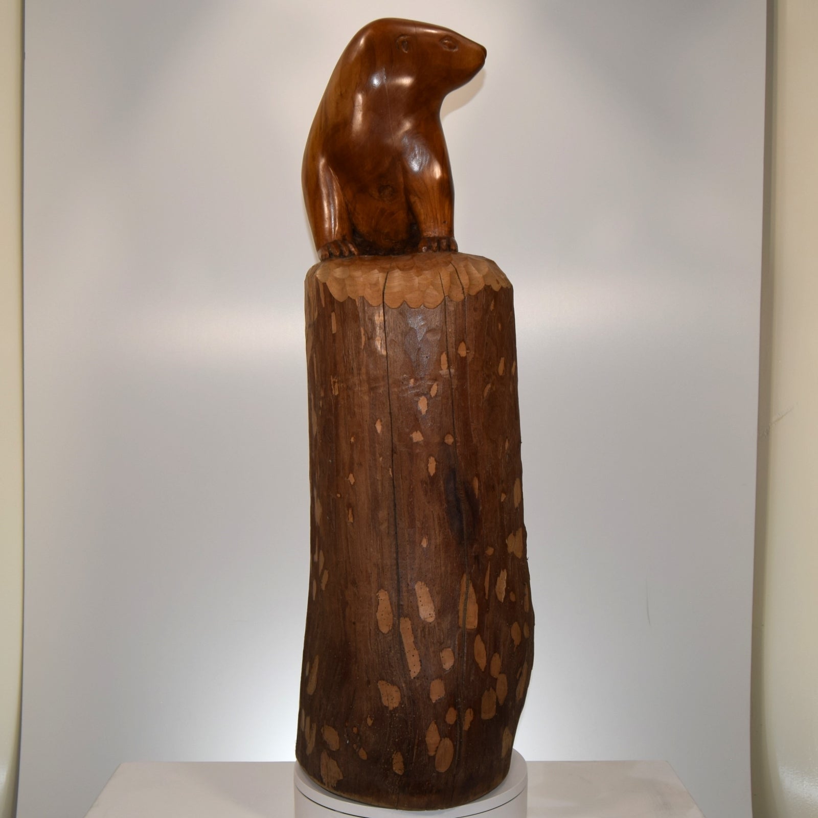 The piece has been carved in an Art Deco style with the beautiful sleek lines of the otter offset with the rugged structure of the plinth.