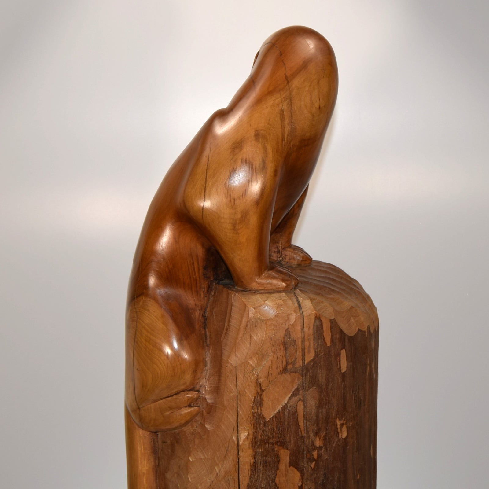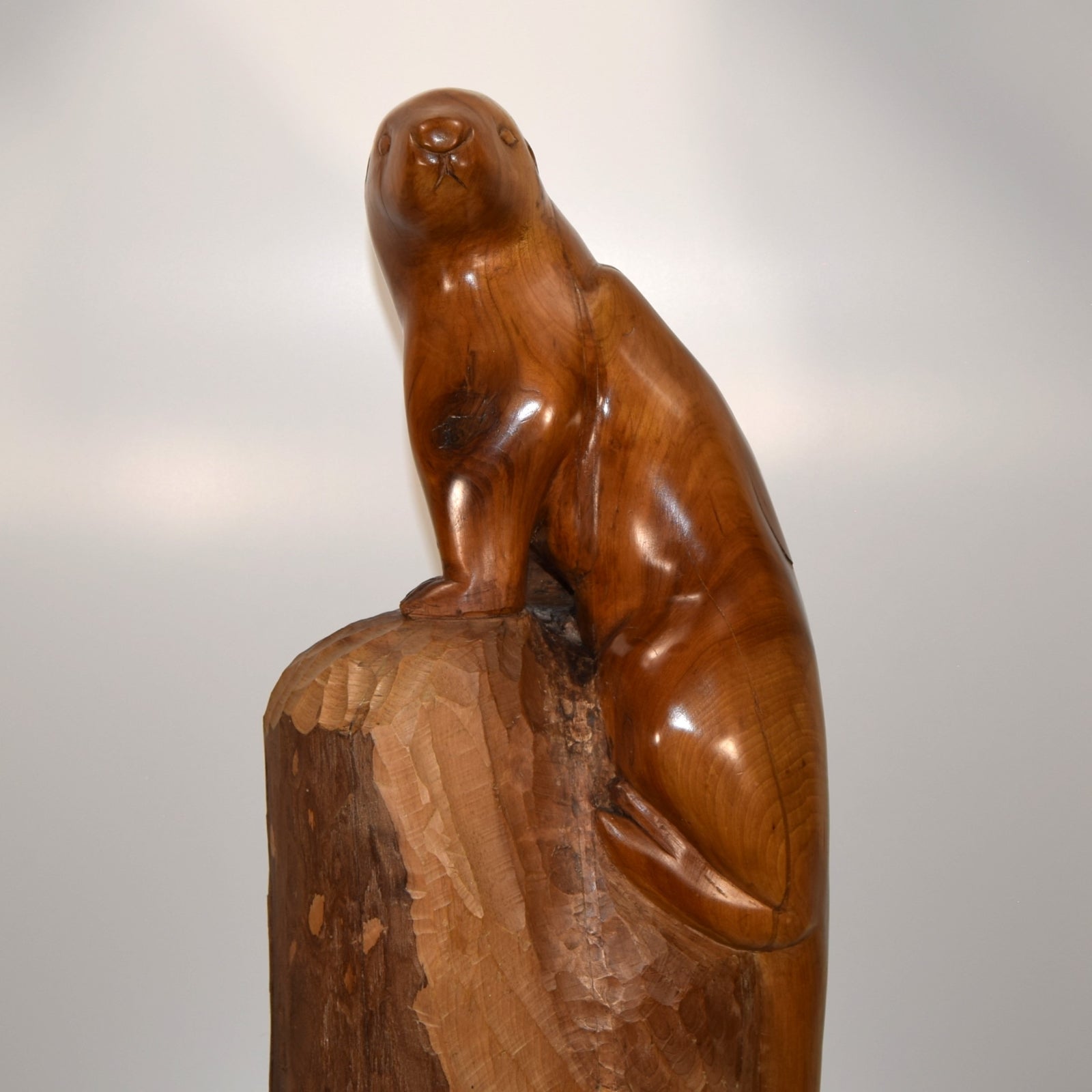 This is truly an impressive sculpture of a Sea Otter which has been hand carved out of a single Yew Tree trunk. It is signed 'PC' however we have not been able to identify the artist.