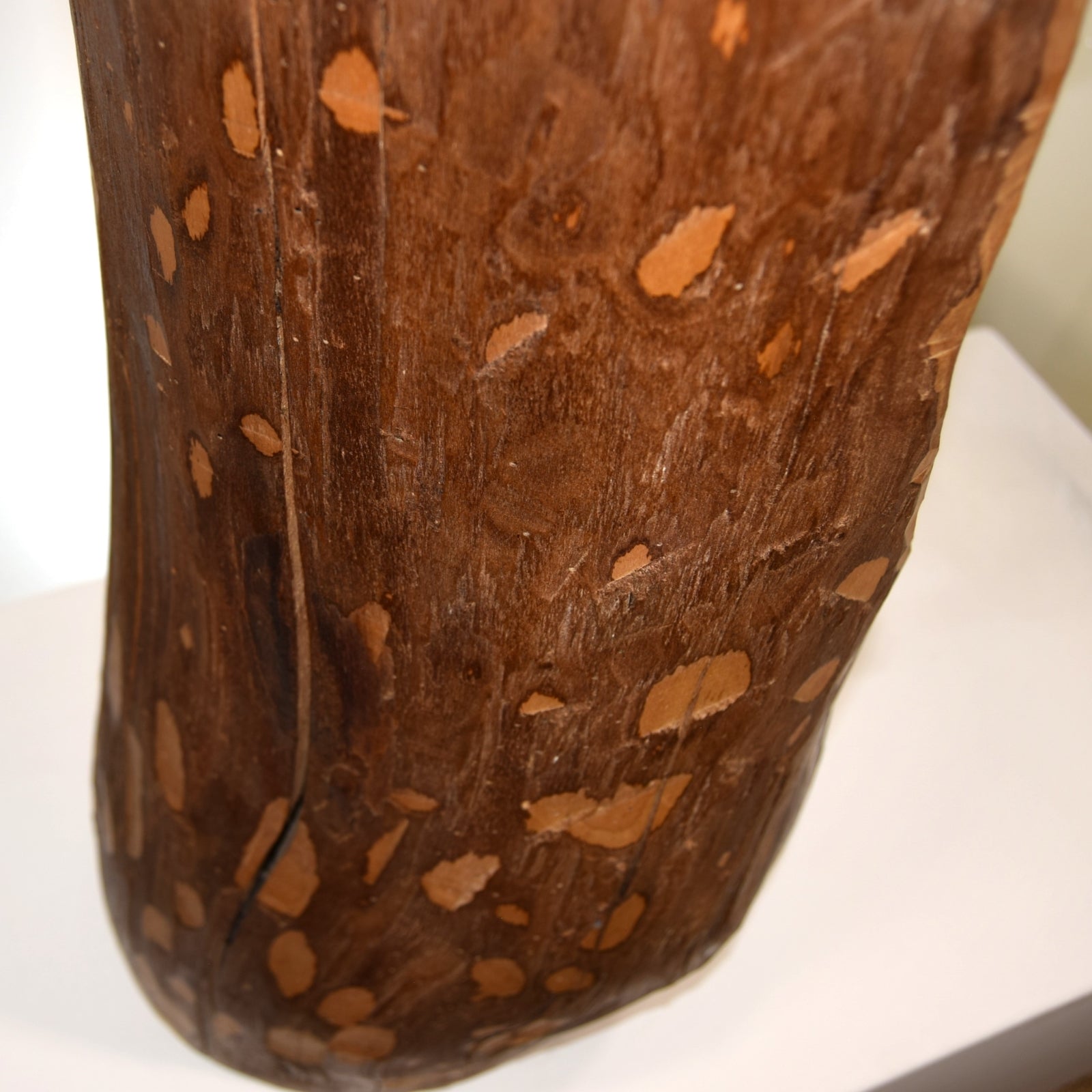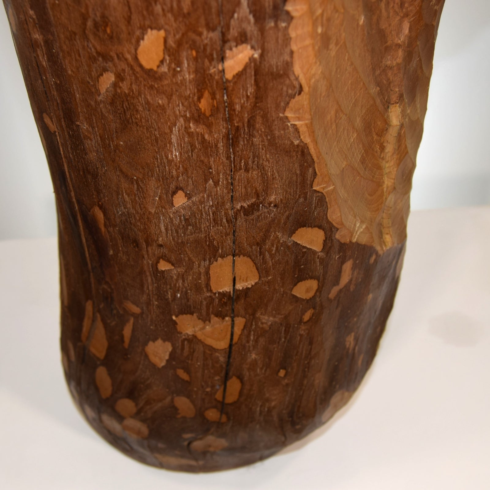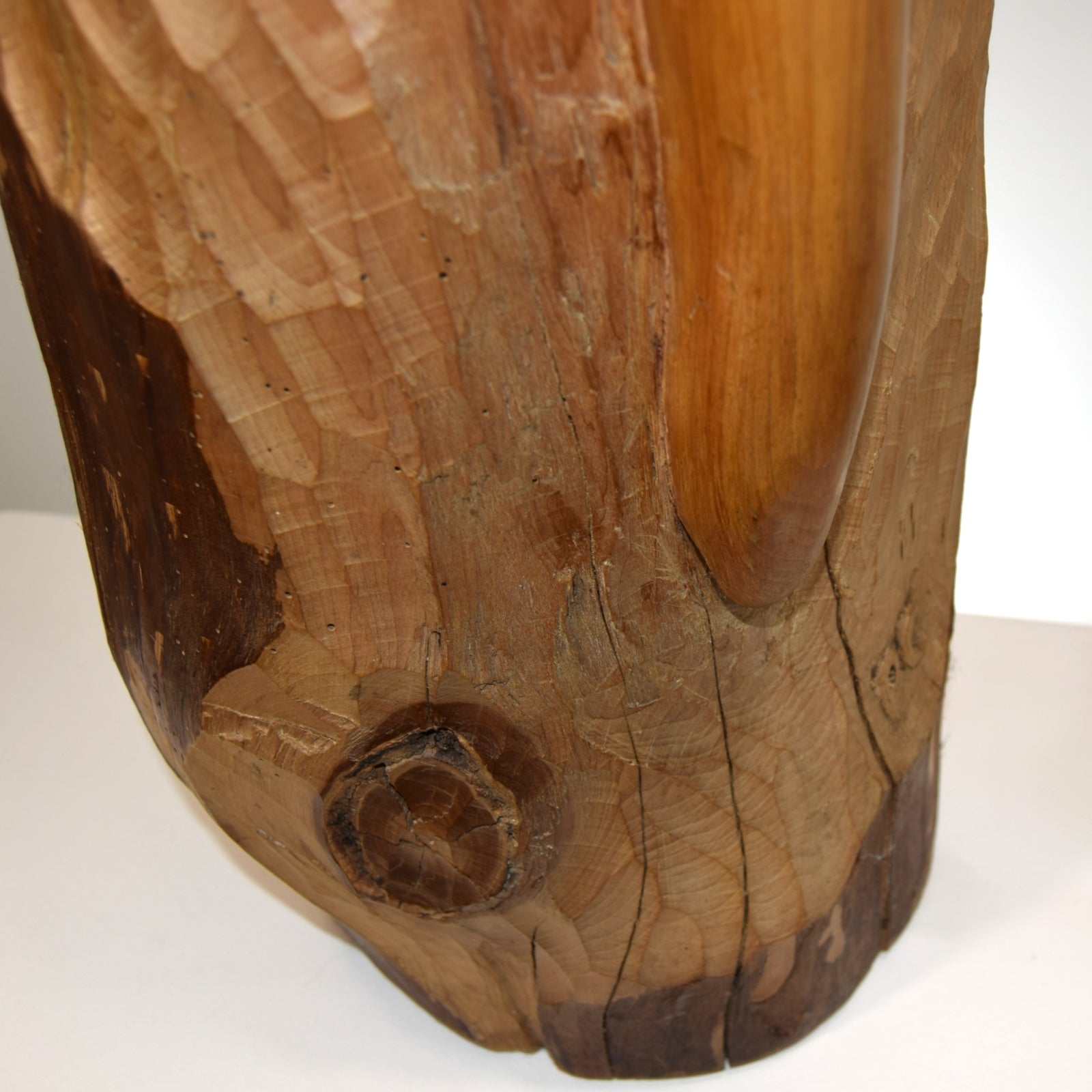 We have commissioned a professional and sympathetic restoration which has brought the piece back to life with vibrant and rich colours of the Yew, yet still retaining the rustic elements such as the texture of the trunk including the drying cracks and surface wood worm holes to the lower section. The cracks have been stablilised and the worm holes have been fully treated.