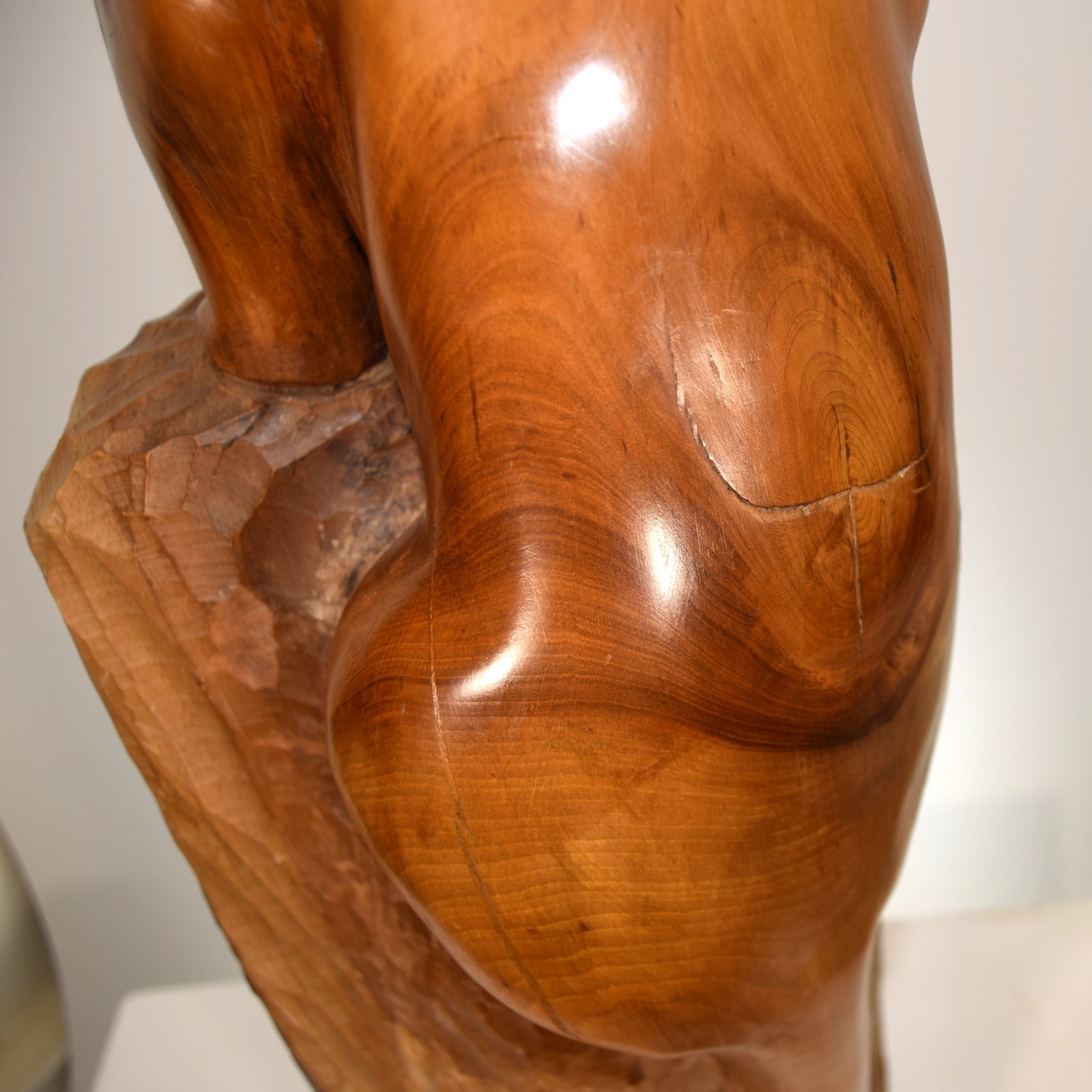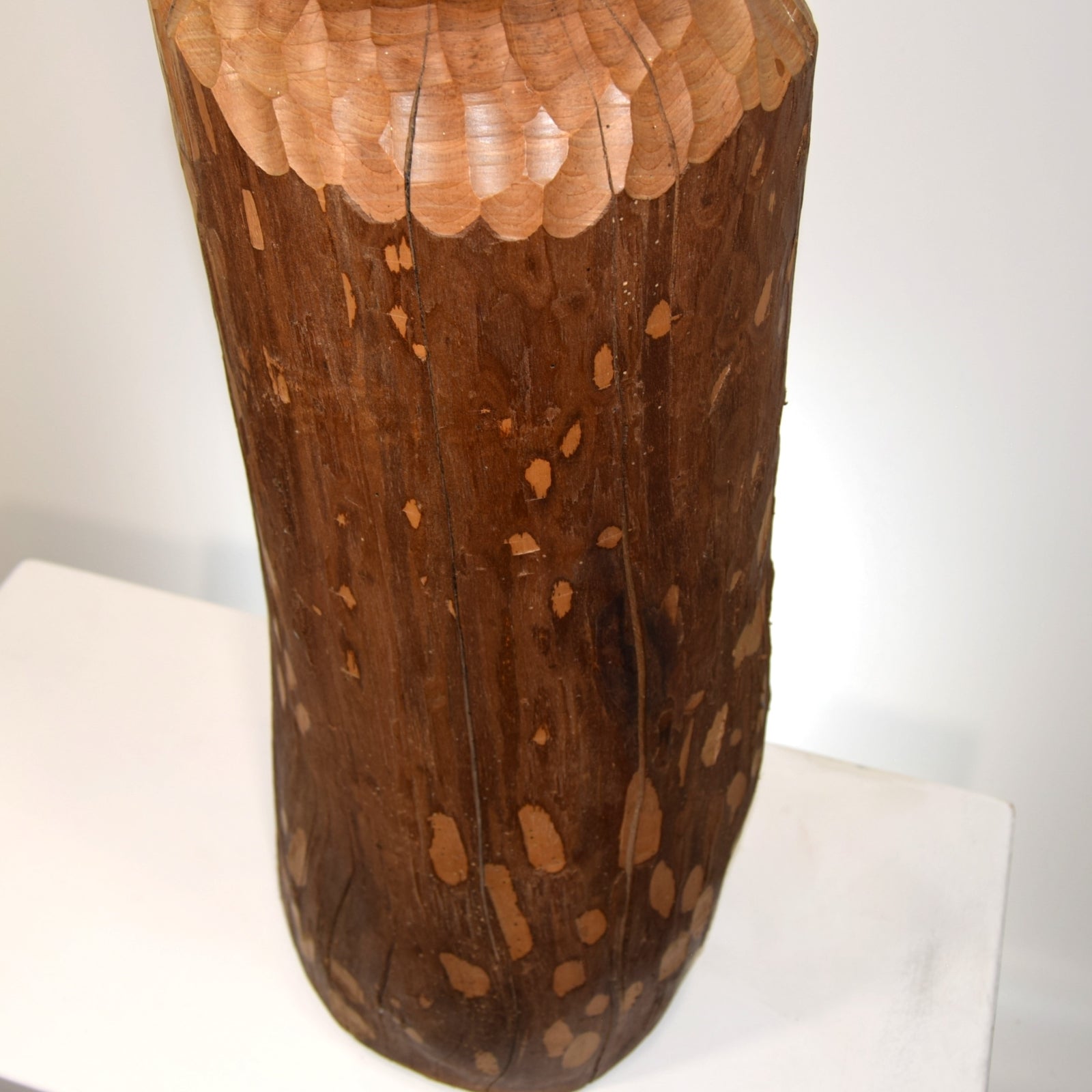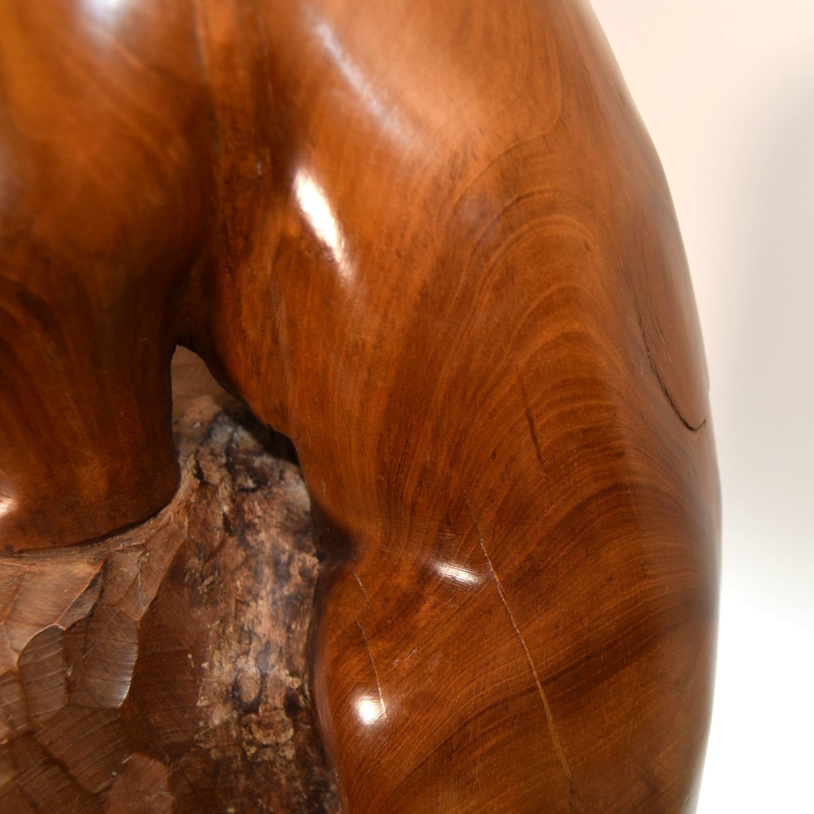 We have commissioned a professional and sympathetic restoration which has brought the piece back to life with vibrant and rich colours of the Yew, yet still retaining the rustic elements such as the texture of the trunk including the drying cracks and surface wood worm holes to the lower section. The cracks have been stablilised and the worm holes have been fully treated.