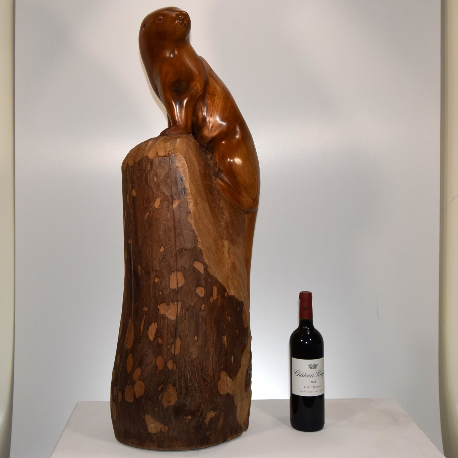 Large and Impressive Sea Otter in Yew signed 'PC' circa 1930 - 50s