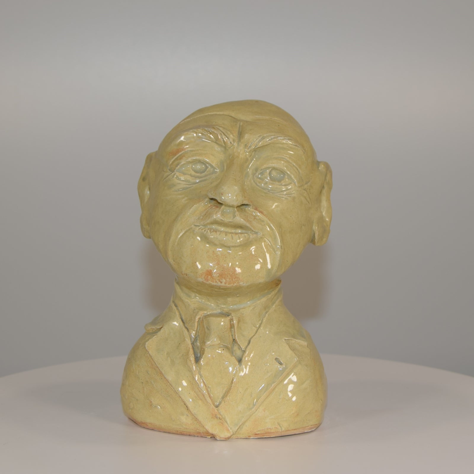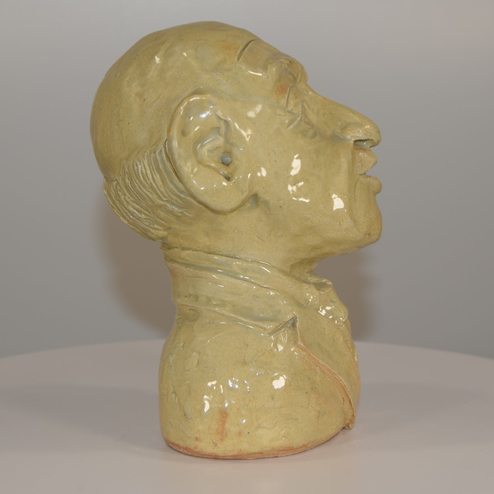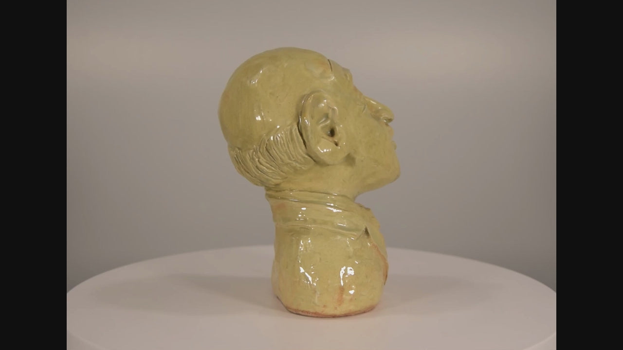 This wonderful high gloss glazed clay bust of an elderly gentleman has been beautifully observed and executed by the artist R Turner with exquisite detail to both his face and his clothing. He has had a very small chip to his right eyebrow which has been professionally restored and is now completely invisible.