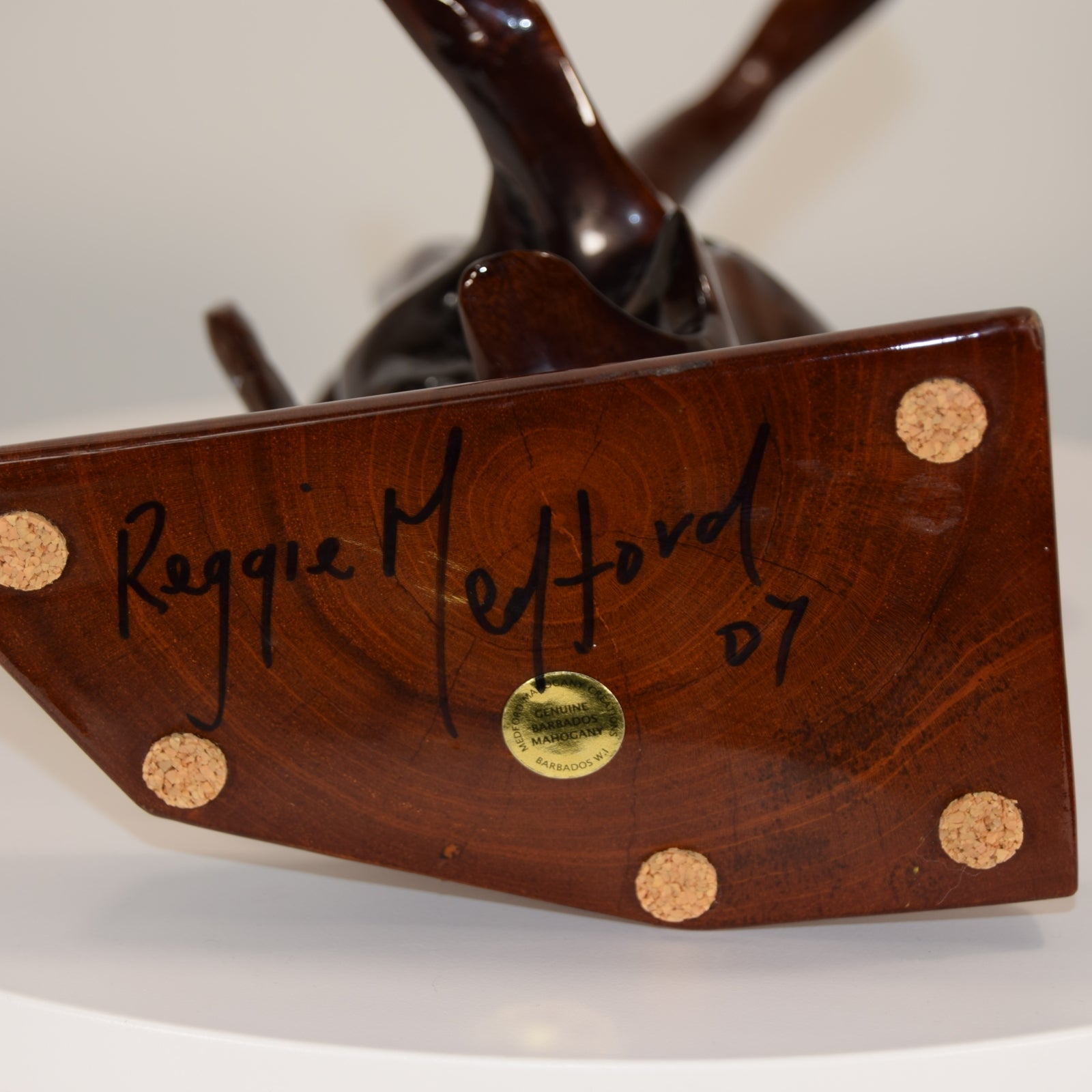 Reggie Medford is a self-taught Sculptor who uses his local Barbadian mahogany. He uses a unique sanding process which, along with the high gloss lacquer finish gives each piece its stunning sense of movement.