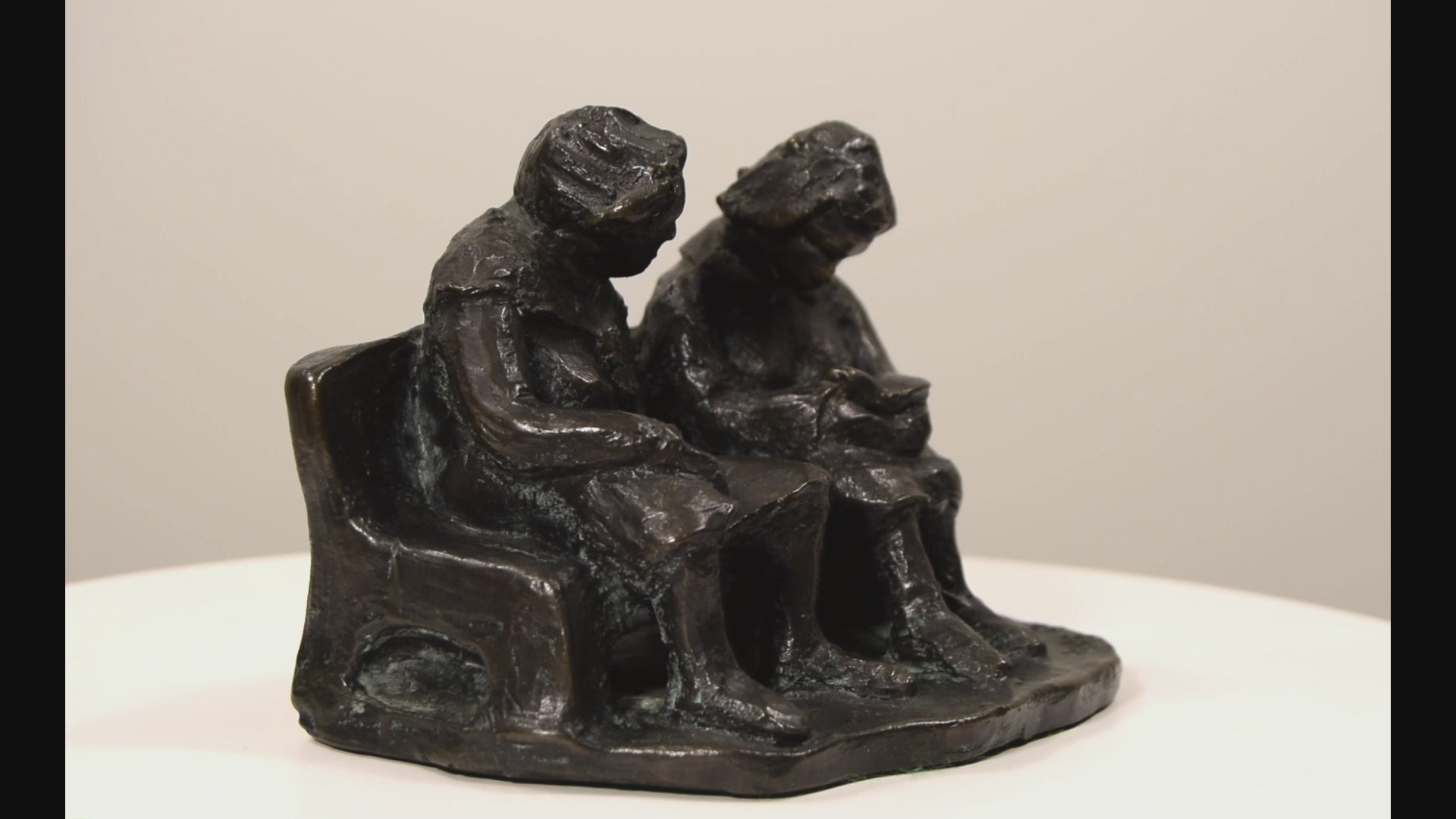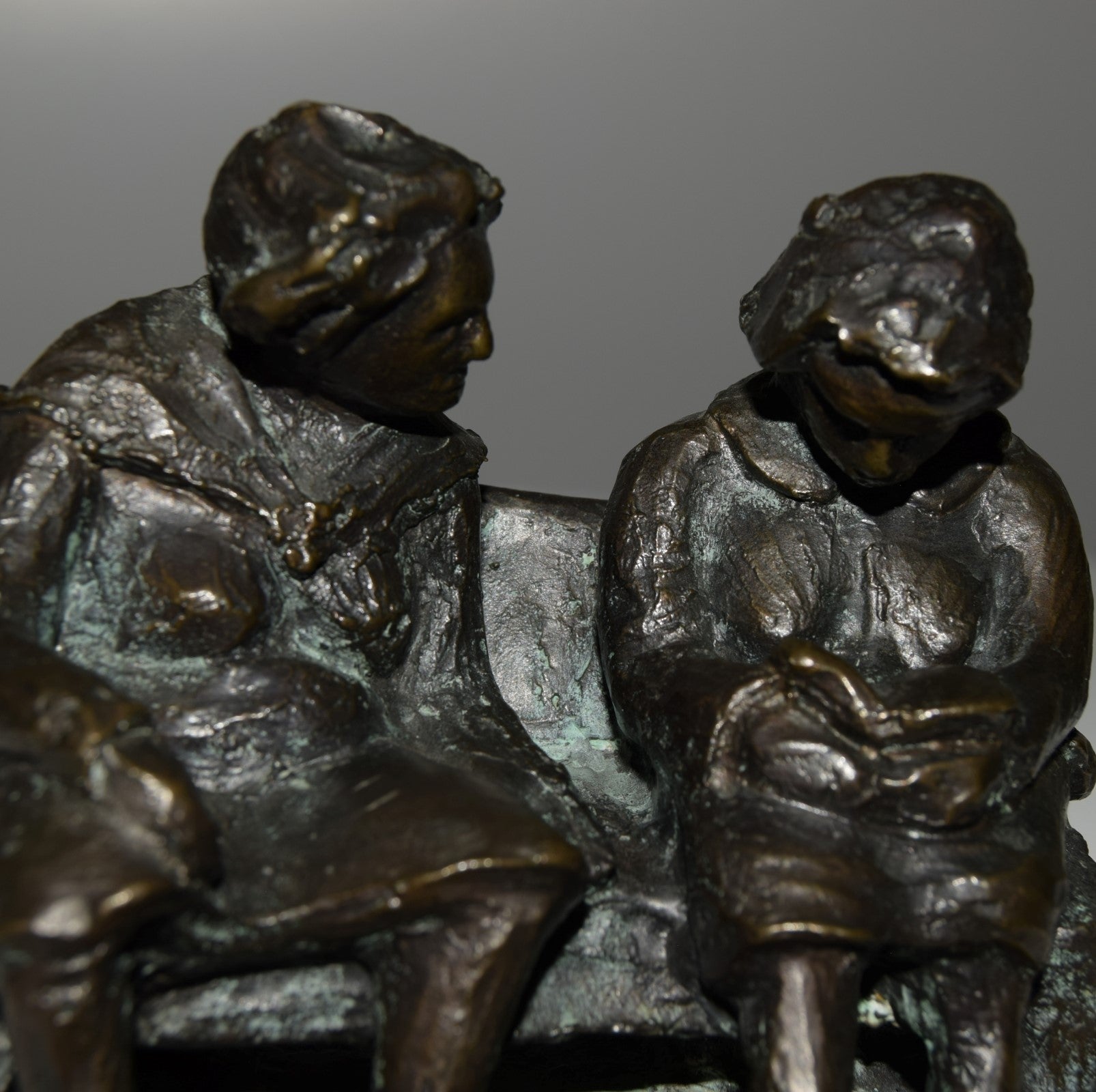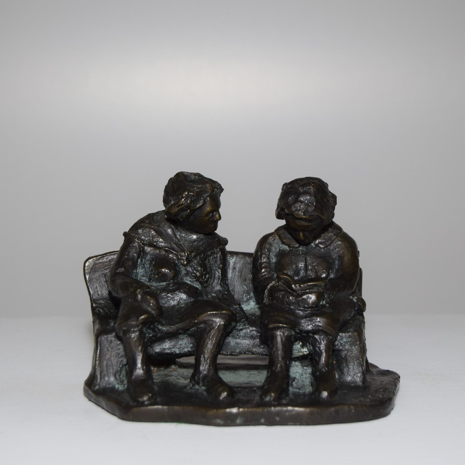 Small Ltd Ed 2/12 Bronze of two Elderly Ladies on a Bench signed EVE dated 1976