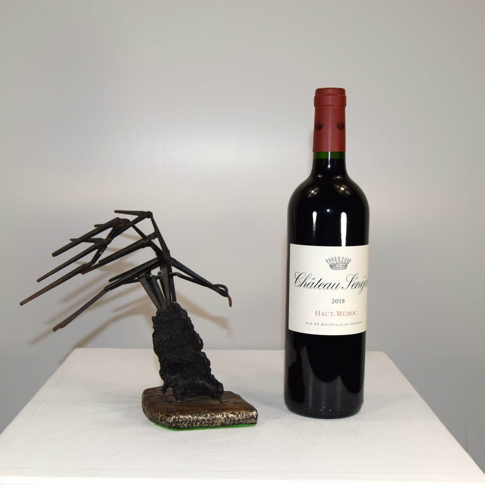 On the underside of the base it still retains the Artist's label albeit strangely in a mirror form 'STEWART BAKER METAL ARTS'. Sadly, we have not been able to identify any other information about the artist.